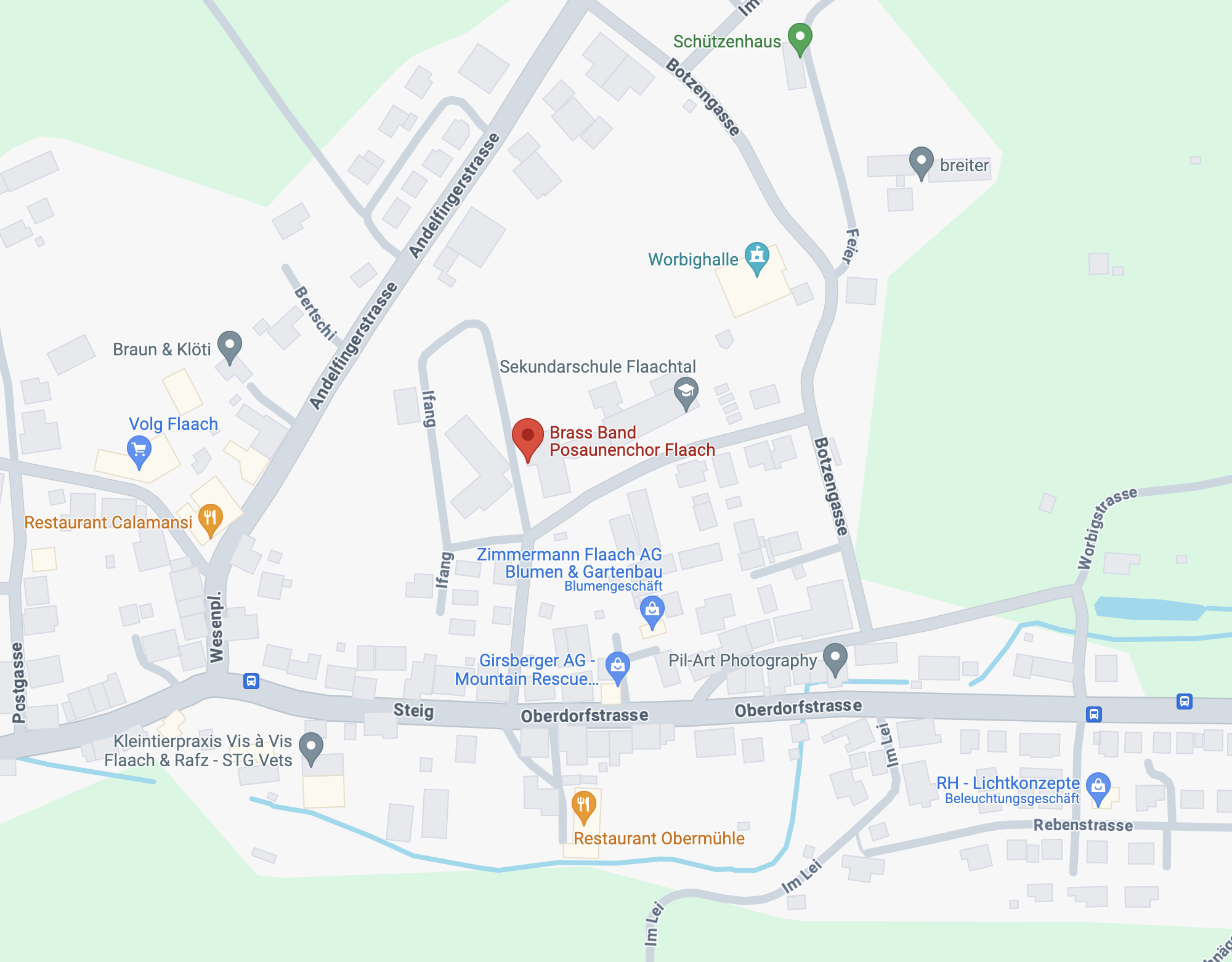 Wo befindet sich unser Probelokal? In Flaach, an der Schulhausstrasse 5, im Obergschoss der Primarschulturnhalle.